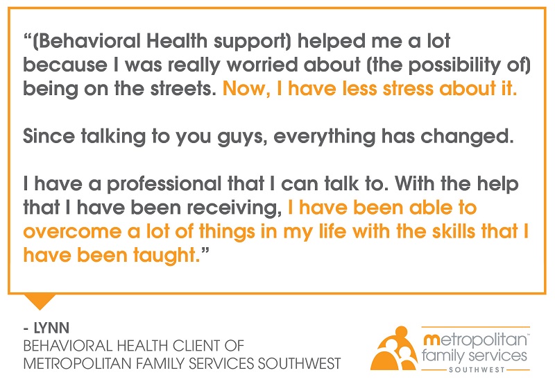 She searched online for a Spanish-speaking agency, and found Metropolitan Family Services Southwest, where Katie Reyes, a Social Worker, supported her through not only her mental health concerns, but also her financial challenges.